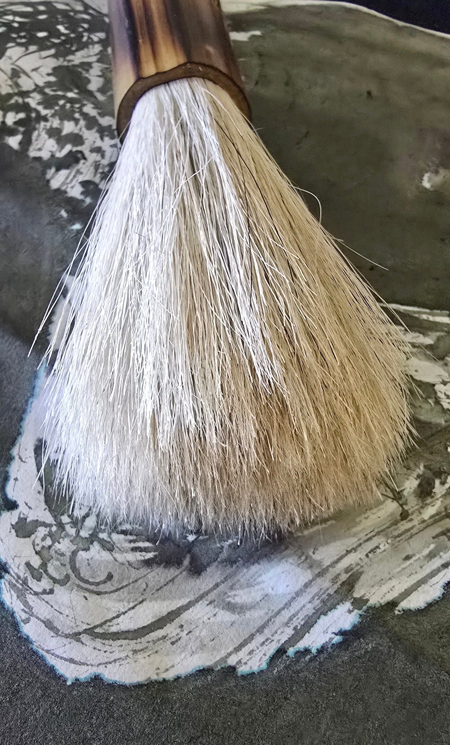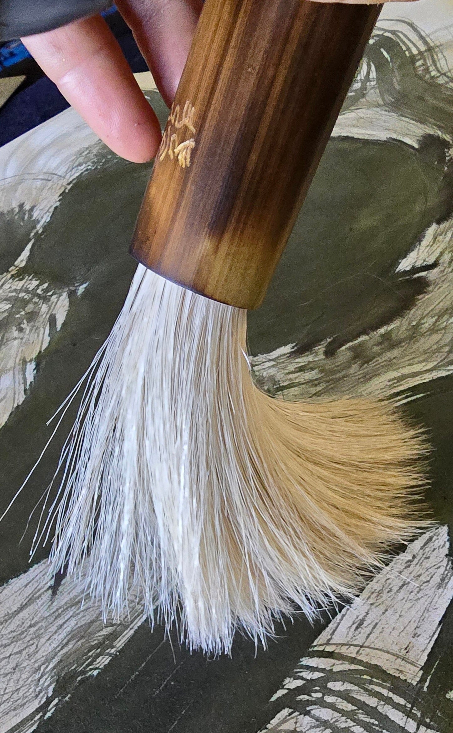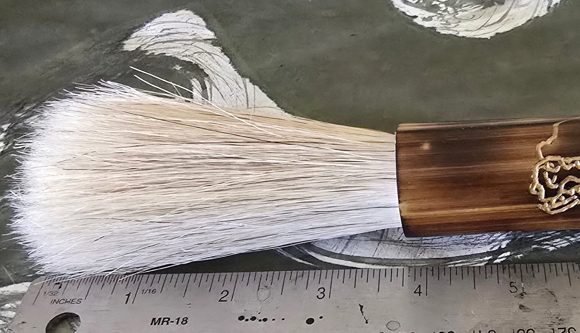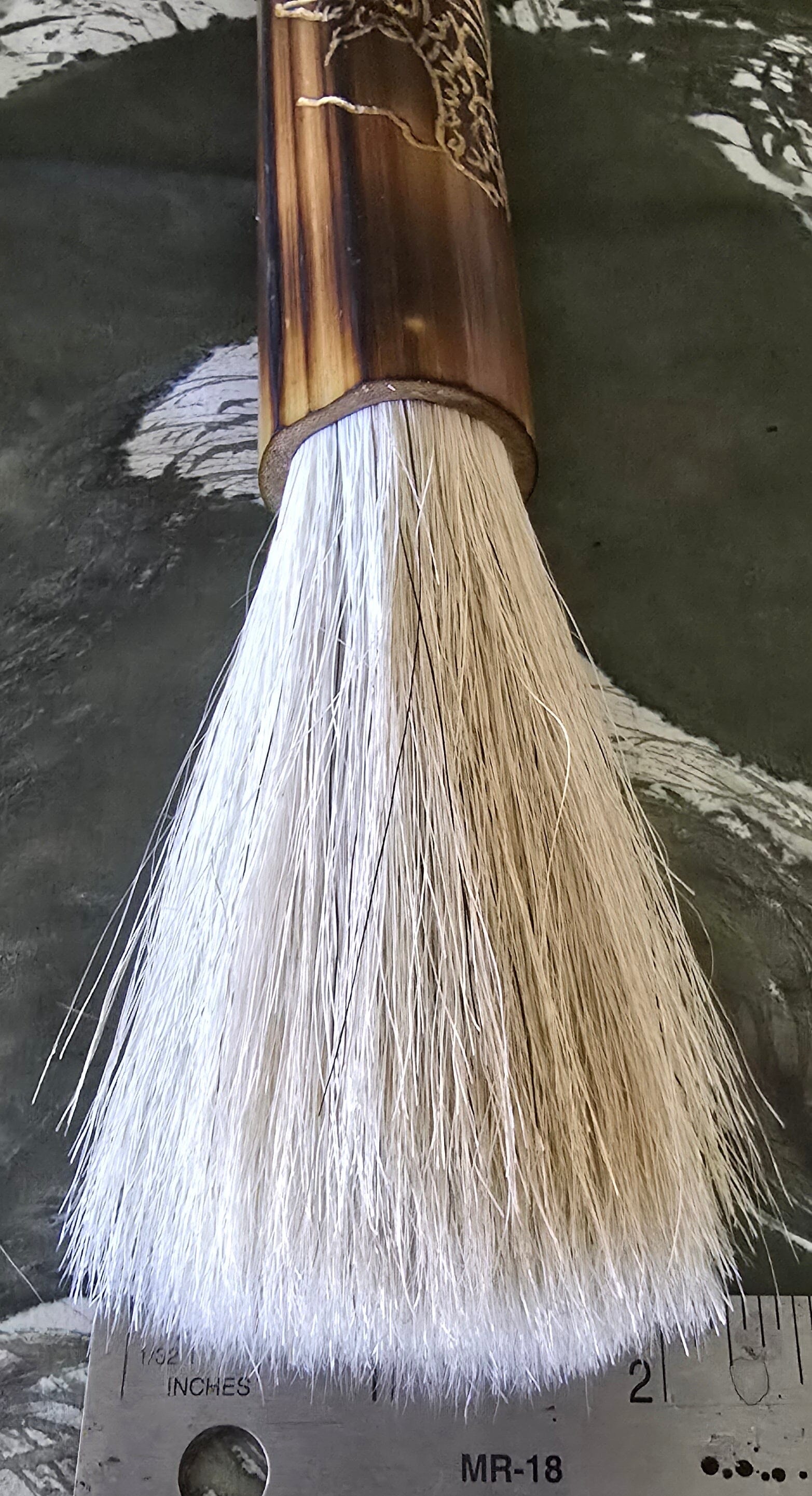 This handcrafted Sumi-e brush features a bamboo handle etched with a dragon design, offering both visual impact and a comfortable grip. The bristles are made from a premium white-color horsehair, naturally tapered to fine points for expressive mark-making and smooth paint flow.