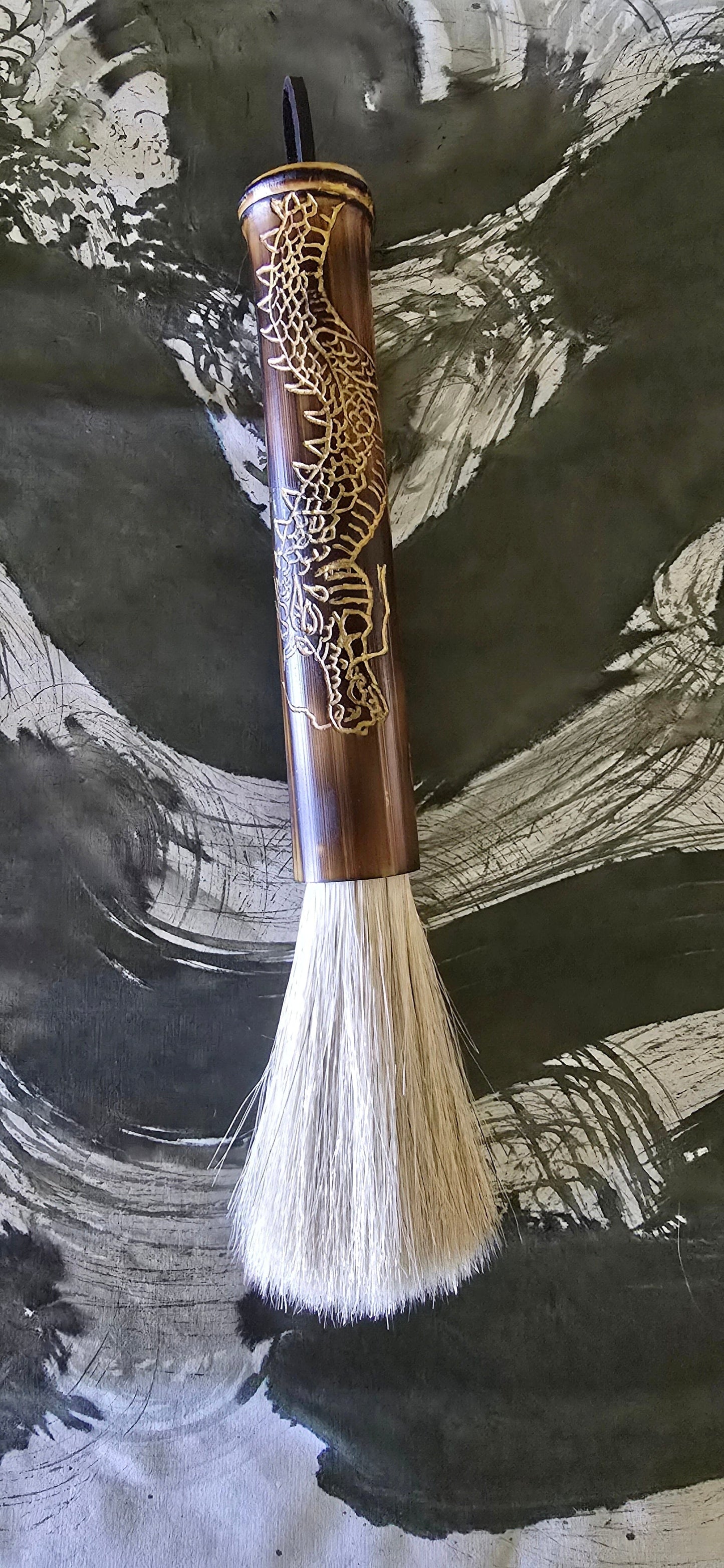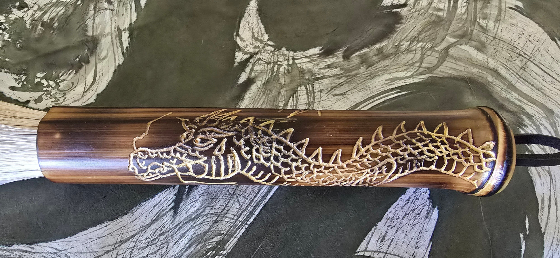 Handcrafted Sumi-e Brush – Bamboo Handle with Dragon Engraving
